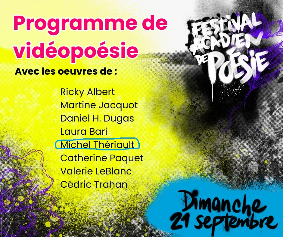 Vidéopoème retenu et présenté au Festival acadien de poésie 2025 à Caraquet NB ;