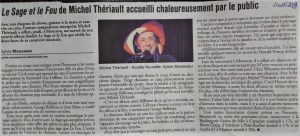 Le Gala Alternatif de la Musique Indépendante du Québec vient de sélectionner le disque « Le sage et le fou » de Michel Thériault dans sa GROSSE LISTE. Le public pourra ensuite voter… Le Gala et le dévoilement des gagnants auront lieu en novembre…