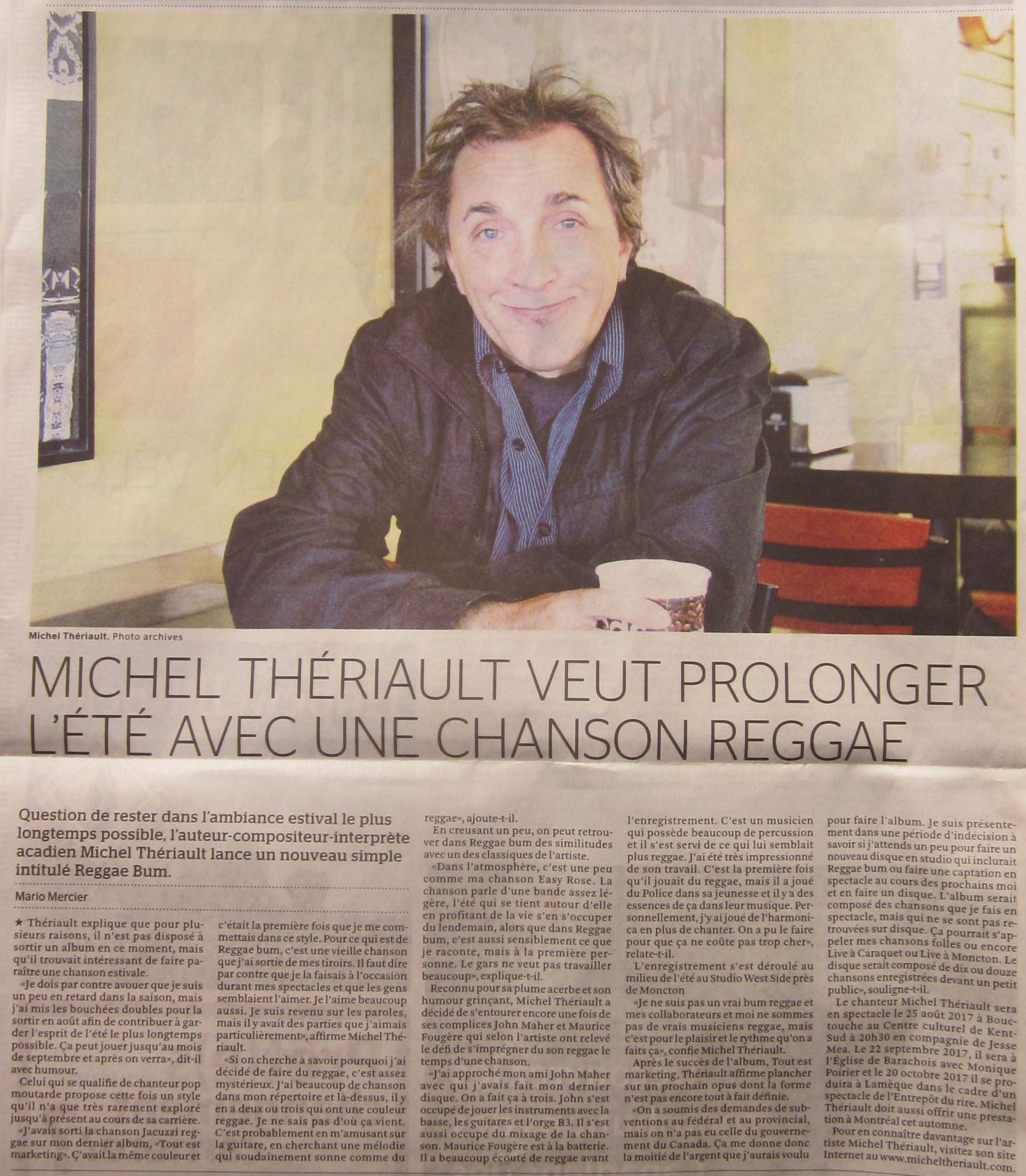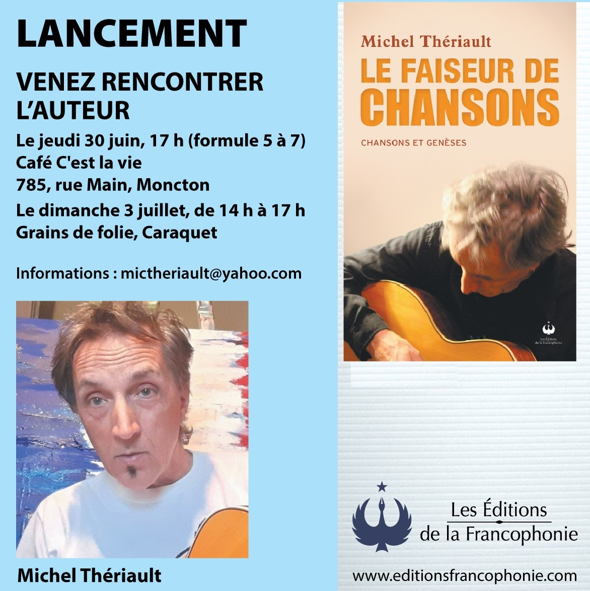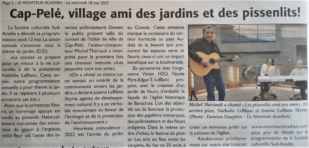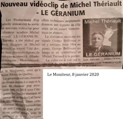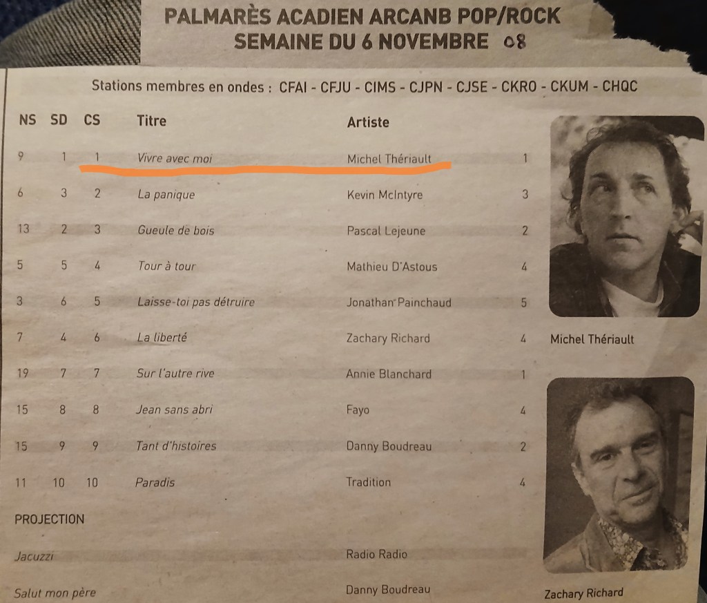 2022 – Michel Thériault publiera les textes de ses chansons dans un recueil (Acadie Nouvelle)