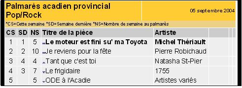 PARMI « LES PLUS GRANDES CHANSONS ACADIENNES DE TOUS LES TEMPS »!